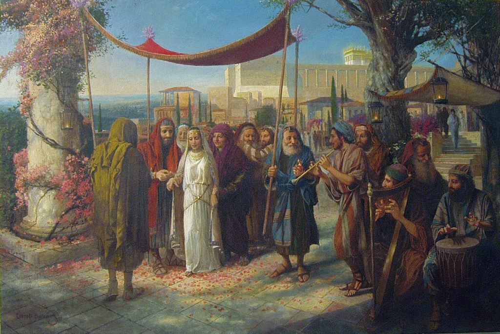 The bride and the groom would be in the wedding chamber for seven days. When the bride and the groom initially went into the wedding chamber, the friend of the bridegroom stood outside the door. All the assembled guests of the wedding gathered outside, waiting for the friend of the bridegroom to announce the consummation of the marriage, which was relayed to him by the groom. John the Immerser (Baptist) referred to this in John 3:29. At this signal, great rejoicing broke forth (John 3:29). The marriage was consummated on the first night (Genesis 29:23). The bloodstained linen from this night was preserved. It was proof of the bride’s virginity (Deuteronomy 22:13-21).